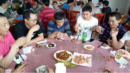 2個小時后,大家才戀戀不舍地離開櫻桃園,趕往下一站——農家樂。農家經濟實惠而美味的大餐讓大家大快朵頤,舉杯同樂。